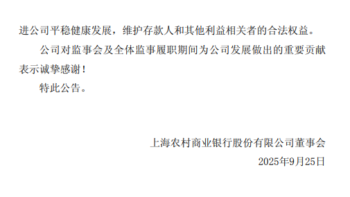 9月24日金融一线消息,沪农商行公告称,2025 年 5 月 23 日米配资,上海农村商业银行股份有限公司(以下简称“公司”)董事会 2025 年第四次会议审议通过了《关于撤销监事会并修订<上海农村商业银行股份有限公司章程>及相关附件的议案》,2025 年 6 月 13 日,公司 2024 年度股东大会审议批准了该议案。近日,经修订的《公司章程》及相关附件《股东会议事规则》《董事会议事规则》获国家金融监督管理总局上海监管局核准生效。本次经修订的《公司章程》生效后,公司监事会和监事同步撤销,由审计委员会承接和行使《公司法》规定的监事会职权。